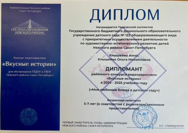 Государственное бюджетное дошкольное образовательное учреждение детский сад № 122 общеразвивающего вида с приоритетным осуществлением деятельности по художественно-эстетическому развитию детей Невского района Санкт-Петербурга