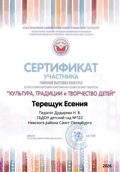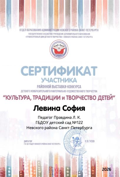 Государственное бюджетное дошкольное образовательное учреждение детский сад № 122 общеразвивающего вида с приоритетным осуществлением деятельности по художественно-эстетическому развитию детей Невского района Санкт-Петербурга