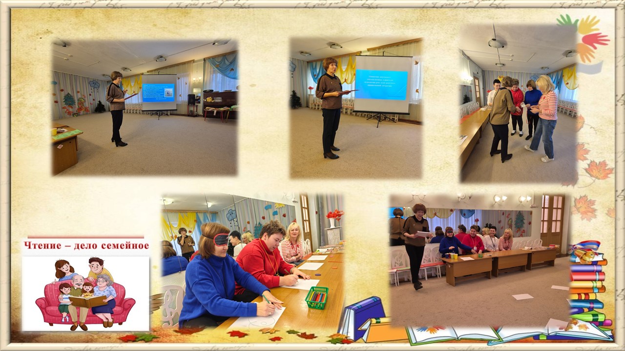 заинтересованных родителей в области семейного чтения. Также педагог провела игровой тренинг на важную тему «Приобщение к чтению начинается с семьи».